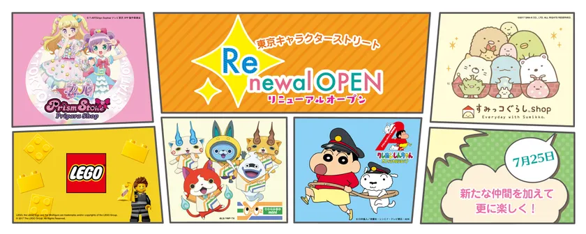 東京駅一番街「東京キャラクターストリート」 7月25日にリニューアルオープン! 「クレヨンしんちゃん」「すみっコぐらし」「プリパラ」 「レゴ(R)ストア」「妖怪ウォッチ」が仲間入り!