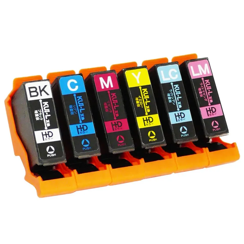 インクのチップスの「KUI互換/クマノミ互換インク」シリーズは、ICチップ付、増量版のみの取扱いとなり、各色単品のほか、6色セット「KUI-6CL-L互換」および6色+ブラックセット「KUI-6CL-L互換+1」もラインナップにそろえます。