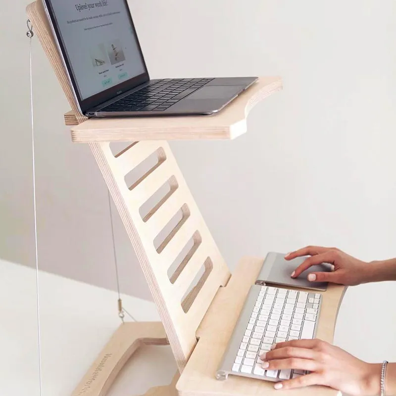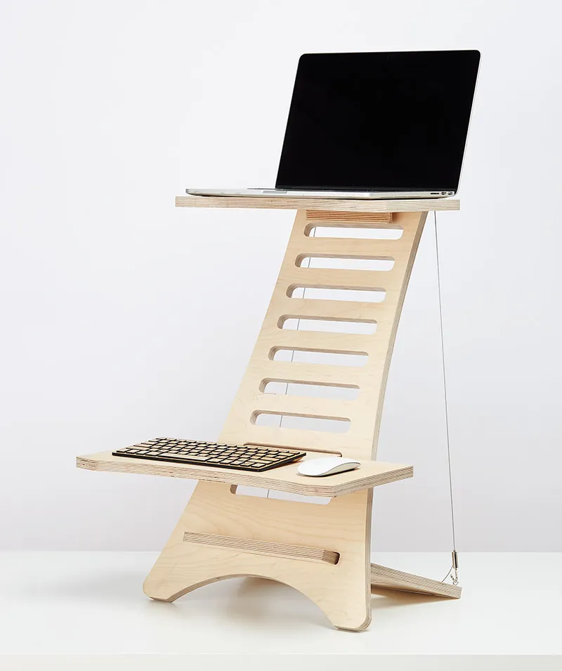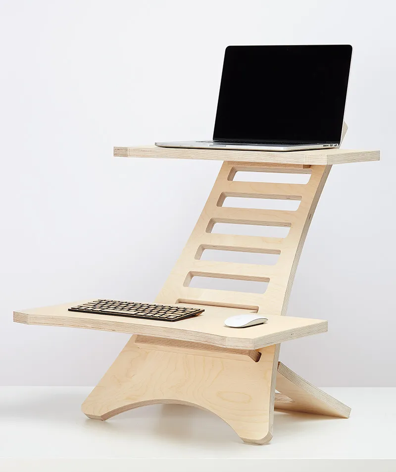 高品質のバーチ材合板を使用し、あらゆるデスクをスタンディングデスクに変えるミニマルデザイン。