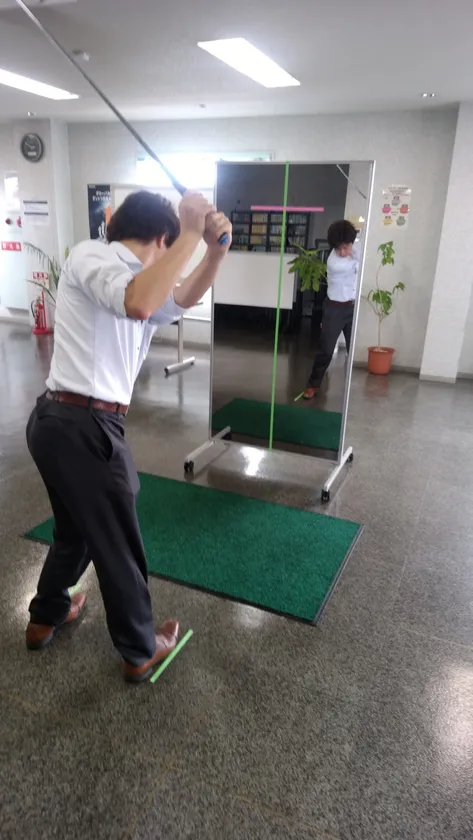自分を客観的に分析することは難しいものです。「イメージ通りのスイング」ともなると非常に難しいです。そのような課題を解決するために当社ホームページでは、大型パネルミラーを使ったお勧めのスイング練習方法を紹介しております。