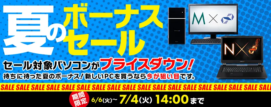 パソコン工房・グッドウィルを運営する株式会社ユニットコム(代表取締役:端田 泰三、本社:大阪市浪速区)は、パソコン工房Webサイトにて、7月4日(火)14:00までの期間限定で、セール対象パソコンがプライスダウンになるスペシャルキャンペーン『夏のボーナスセール』を開催いたしました。