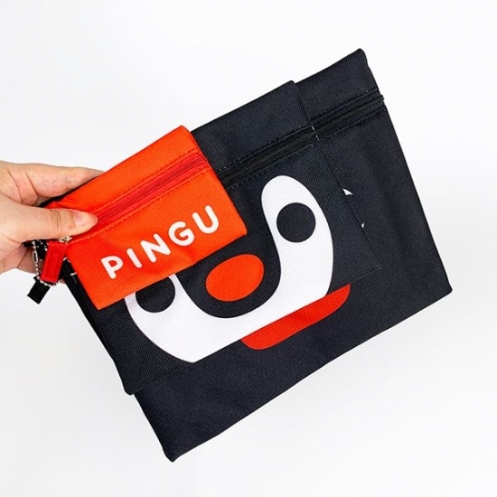 ピングーとピンが。直球デザインで、まず初めてグッズを買うときはこういうのが嬉しいですよね。黒で汚れも目立たなそう、、