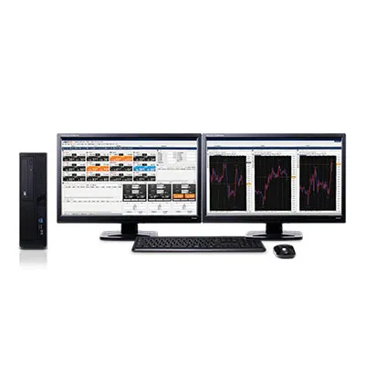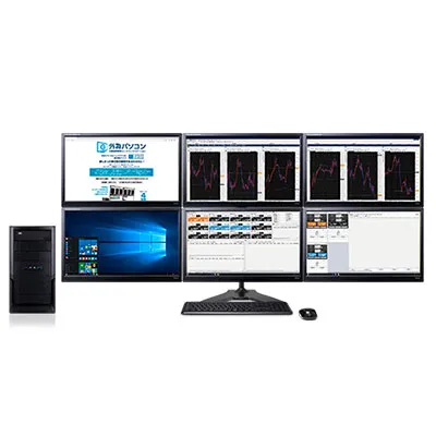 株式会社外為どっとコムと、パソコン工房が共同企画した「外貨投資」を快適に行うことを目的とした個人向けデスクトップ・パソコンです。弊社オリジナルの、最大6画面で外為チャートなど多くの情報を表示できるハードウェア一式に、店頭FX(外国為替保証金取引)業務でトップクラスの実績を持つ、株式会社外為どっとコムが提供するソフトウェア「外貨ネクストネオ リッチアプリ版」をプリインストールし、さらに両社が提供するサポート体制を組合せることによって、充実したオンライントレード環境を実現しました。
