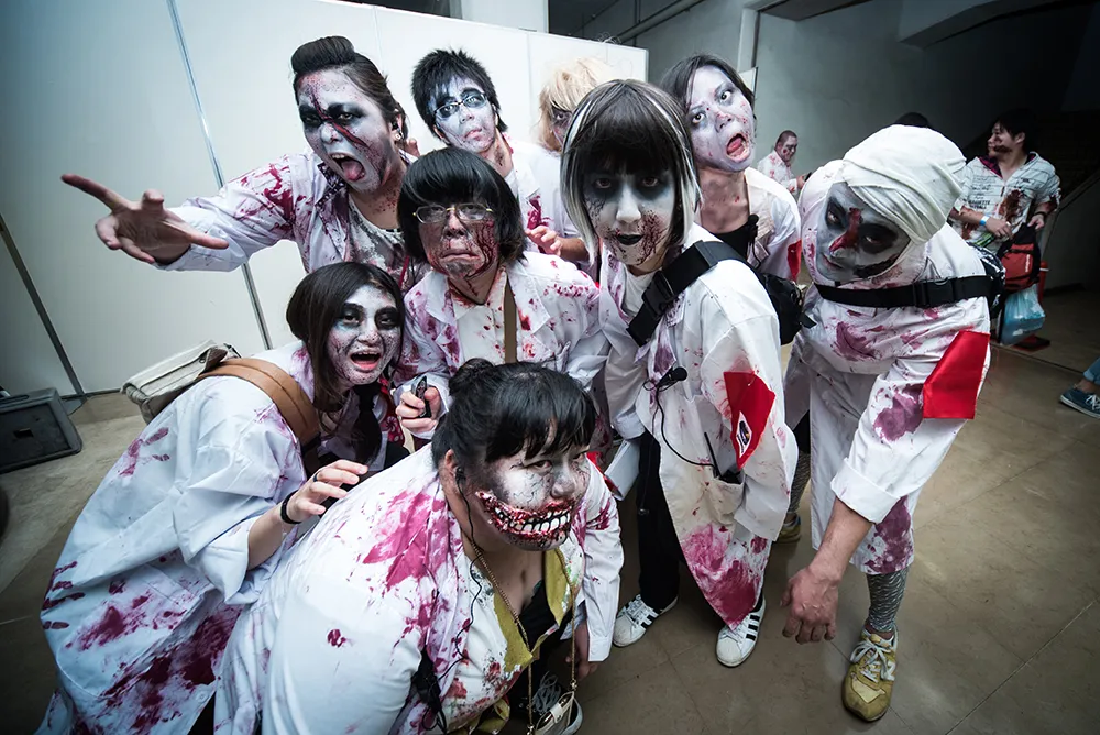 大井競馬場にゾンビ大量出没!! 大人気ゲーム「バイオハザード」 ファンイベントの“ゾンビラッシュ”にて 学生がゾンビ軍団の特殊メイクを実施!