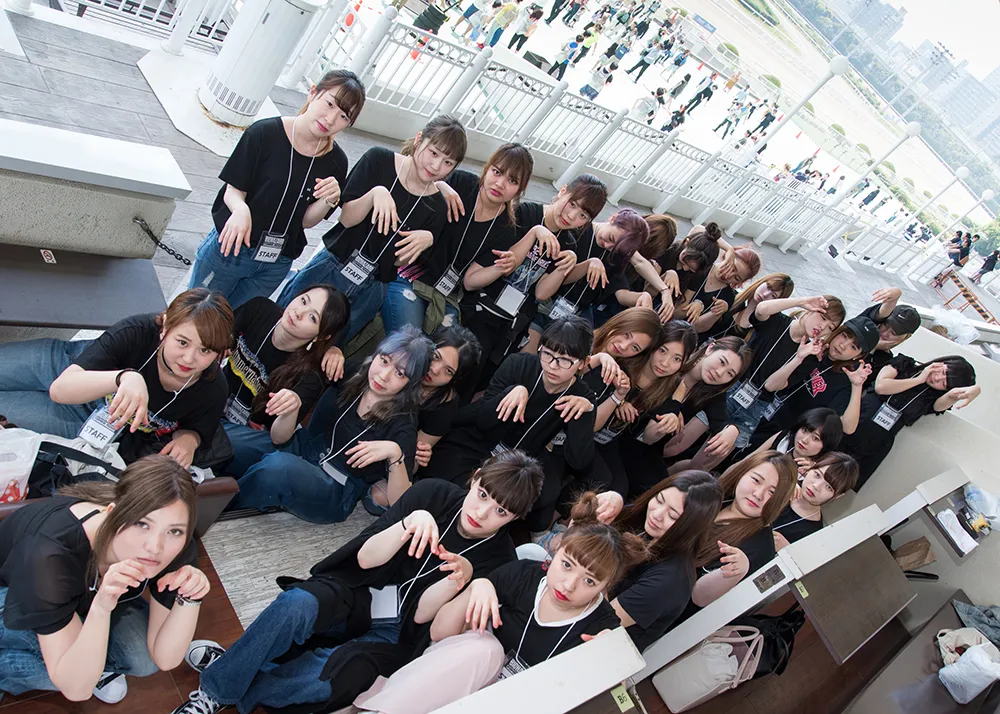 上画像:メイクを担当した学生の集合写真