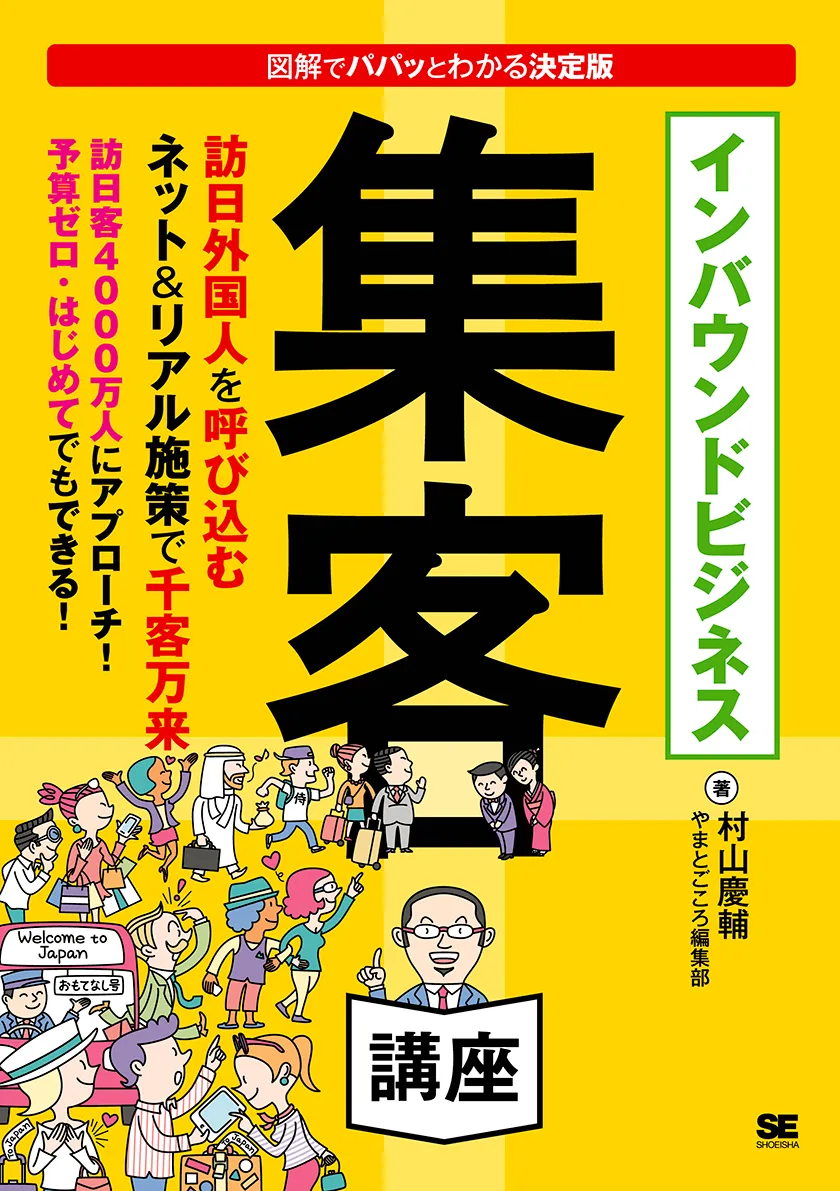 | ■著者紹介 株式会社やまとごころ代表・村山慶輔 2007年に訪日外国人観光に特化したBtoBサイト「やまとごころ.JP」を立ち上げ、ホテル・小売・飲食・自治体向けに情報発信、教育・研修、コンサルティングサービスなどを提供。インバウンドの専門家として、ワールドビジネスサテライトをはじめ、各種メディアへ出演多数。 |