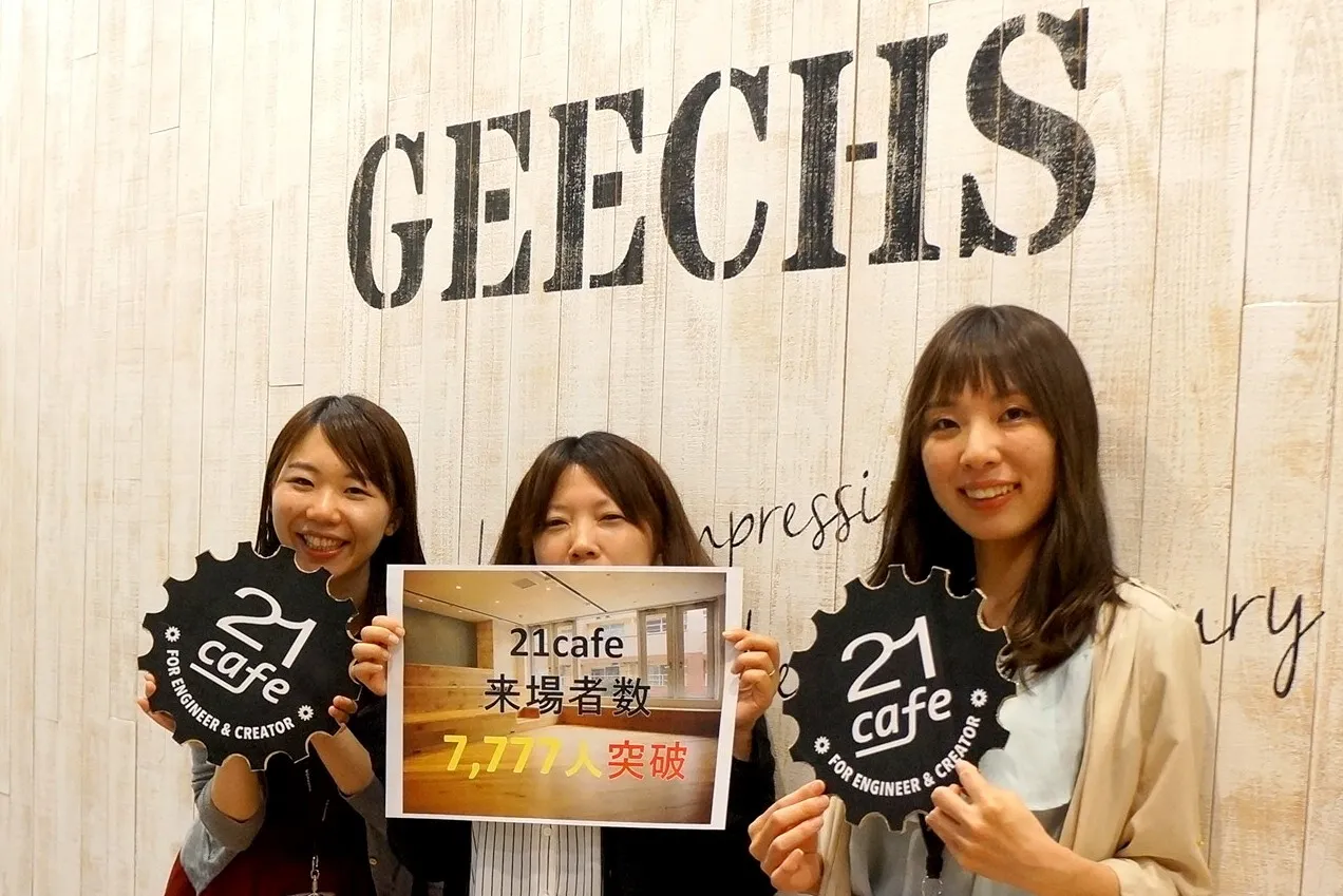 ギークス株式会社(本社:東京都渋谷区、社長:曽根原 稔人、以下ギークス)が運営する「21cafe(ニイイチカフェ)、以下21cafe)」の来場者数が7,777人を突破しました。今後も21cafe管理人による勉強会主催のサポートや、快適な空間の提供によって、IT関連の勉強会活性化に貢献します。
