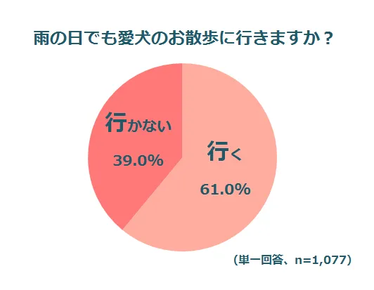 ・「雨の日でもお散歩に行く」と答えた飼い主さまは61.0%