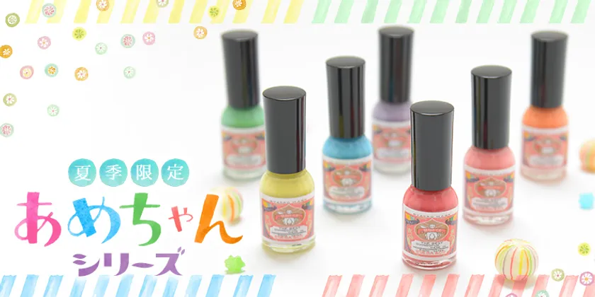 2016年、準備数4,000本が1週間で完売するほど大好評をいただきSNSでも話題になった「あめちゃん」シリーズが帰ってきました。昔ながらのあめちゃんのような、なつかしくってキュートな色合い、ほんのりとした透け感、ぷるんとした輝きが魅力です。