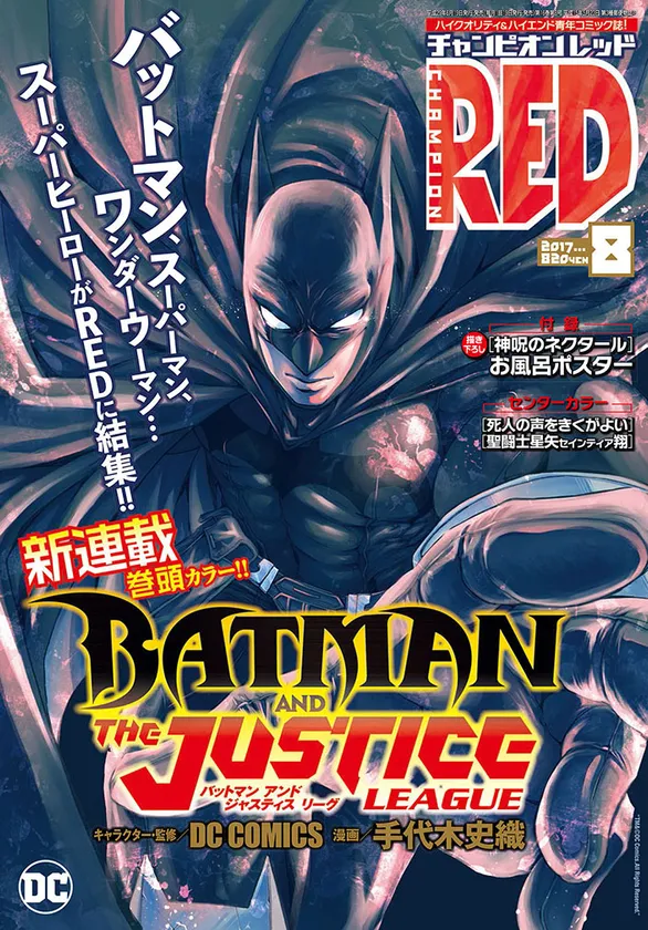 そんなスーパーヒーローチームを世界で初めて「マンガ」化した作品、「バットマン アンド ジャスティスリーグ」がチャンピオンREDにて連載開始します。マンガを担当するのは「聖闘士星矢 THE LOST CANVAS 冥王神話」シリーズの手代木史織。