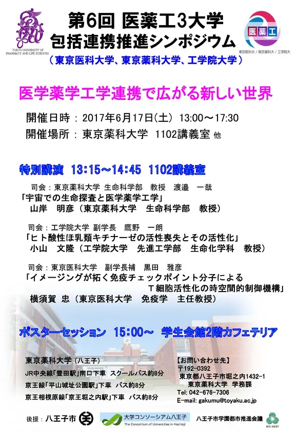・開催場所:東京薬科大学(東京都八王子市堀之内1432-1) 1102講義室 他