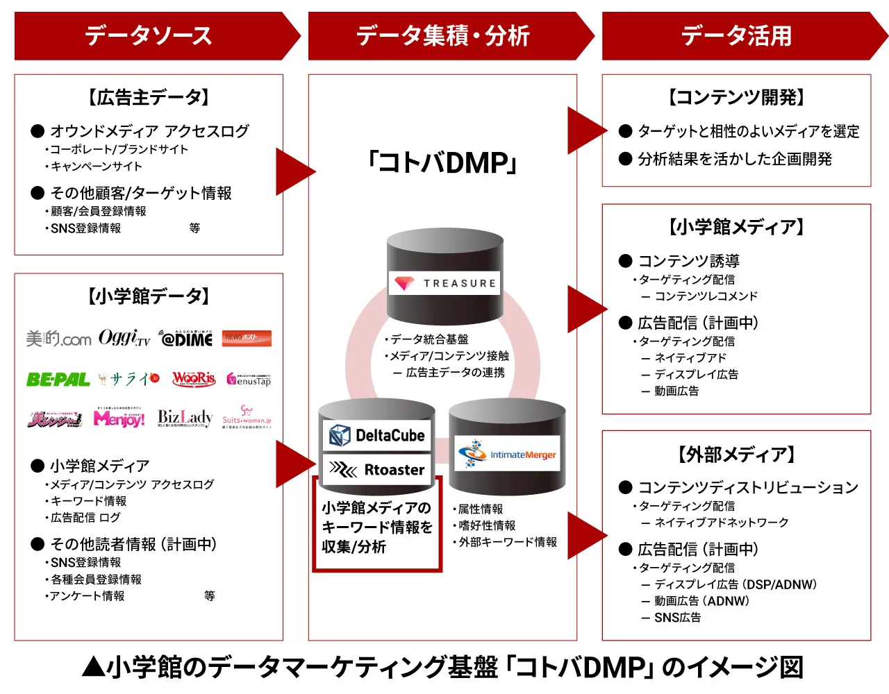 ブレインパッドの「Rtoaster」「DeltaCube」が小学館の新サービス「コトバDMP」に採用