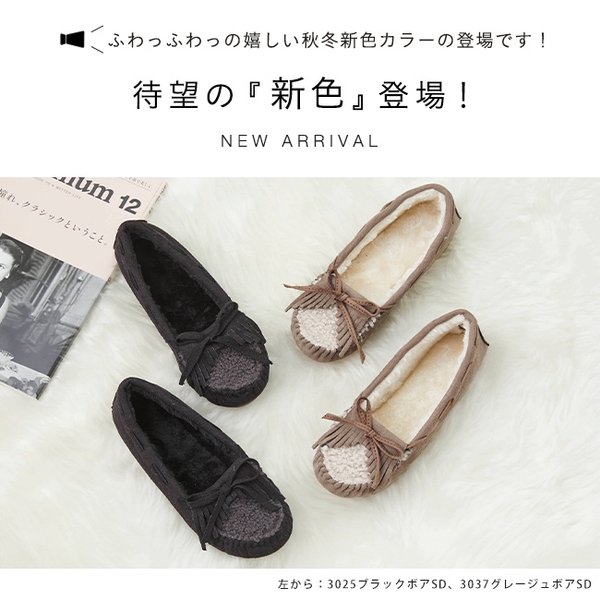 商品名 : mooimooi(モーイモーイ)フェイクファーリボン甲深モカシン