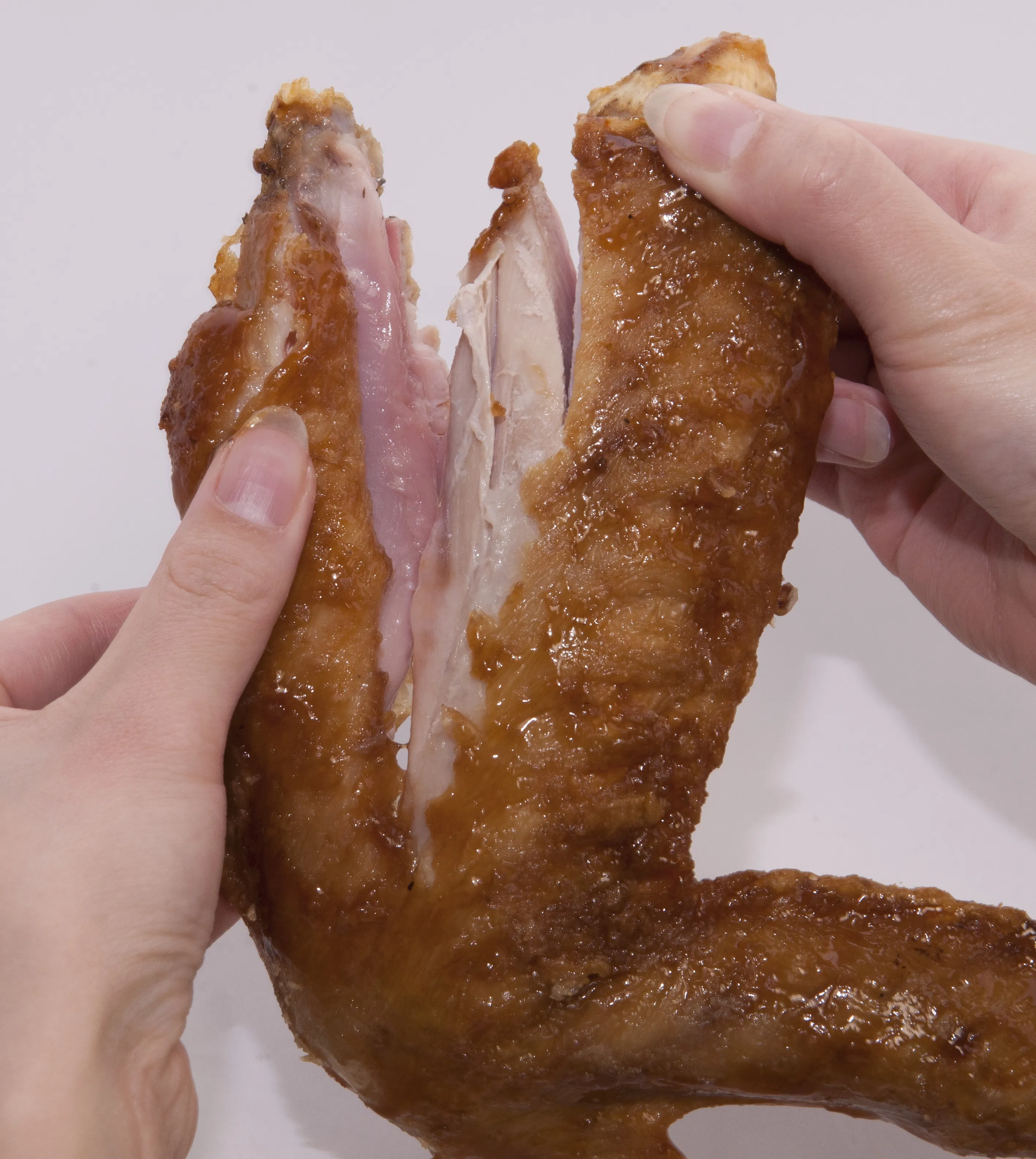 当社の「プレミアム手羽先」は、2度揚げすることにより、肉質のジューシーさを