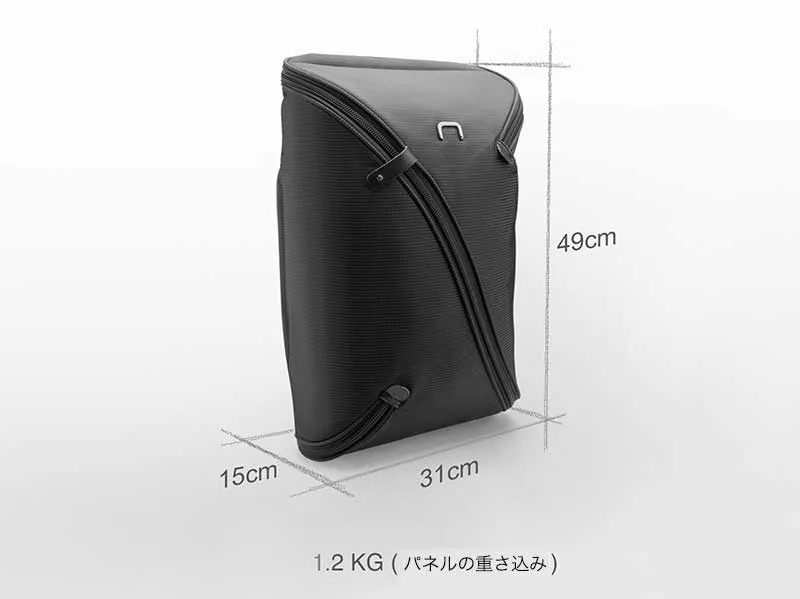 世界初、多機能で交換可能な整理パネル付きのバックパック!