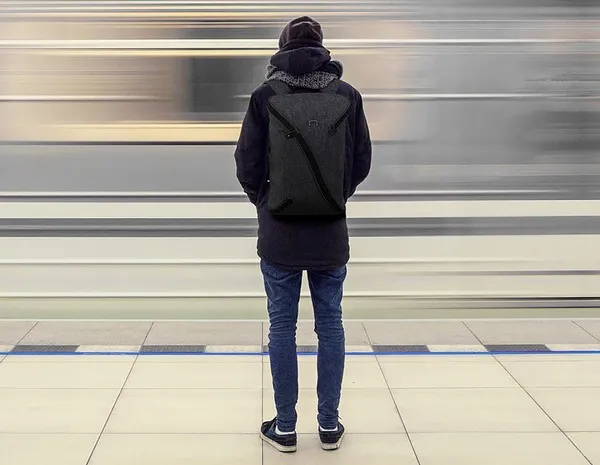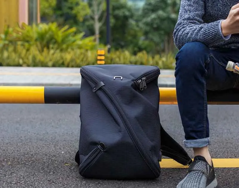 スタイリッシュでシンプルな生地1枚に、1つのジッパーが全体に付いたバックパック。