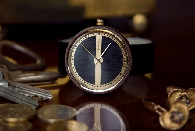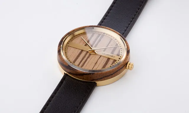 くるみの木&ゴールドの316Lステンレススチールで作られた本体+ブラックのストラップ