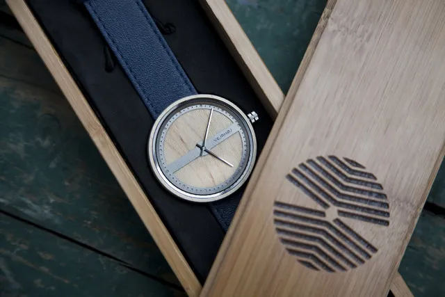 カエデの木&と316Lステンレススチールで作られた本体+ネイビーのストラップ