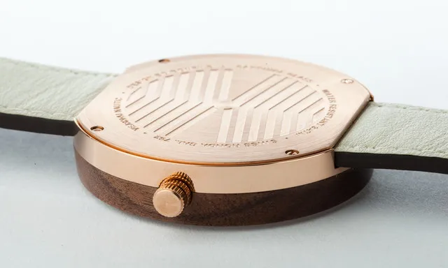 くるみの木&ローズゴールドの316Lステンレススチール+ダークブラウンのストラップ