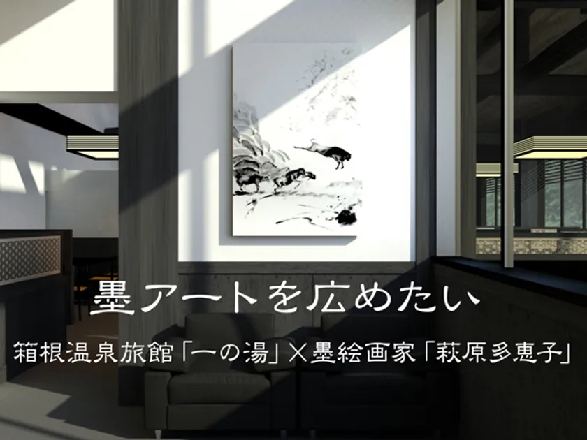 箱根温泉旅館「一の湯」×水墨画家「萩原多恵子」 新規開業旅館に“墨アート”を飾るプロジェクトを開始