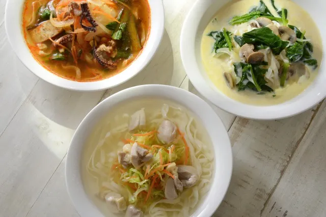 原材料:豆乳蒟蒻麺【豆乳、こんにゃく芋精粉、水酸化カルシウム、(原材料の一部に大豆を含む)】、野菜セット【キャベツ、人参】、調味肉【鶏肉、チキンスープ、食塩】、チキンブイヨン【食塩、砂糖(ビートグラニュー糖)、チキンエキスパウダー(デキストリン、チキンエキス、食塩)、酵母エキス、マッシュポテトパウダー、馬鈴薯でん粉、オニオンパウダー、人参パウダー、揚げにんにく(にんにく、米油)、こしょう】