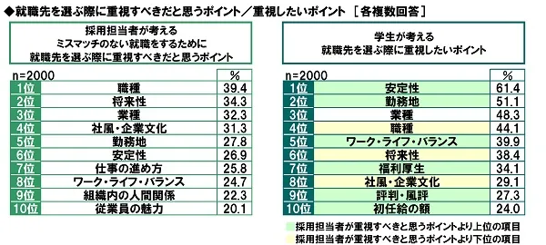 ◆採用担当者が重視すべきポイント2位の「将来性」は学生が重視するポイントでは6位に