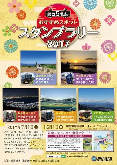 関西5私鉄と歴史街道推進協議会は、7月1日(土)から10月1日(日)まで、各社の沿線にある歴史街道の名所を巡るスタンプラリー「関西5私鉄おすすめスポットスタンプラリー2017」を開催します。