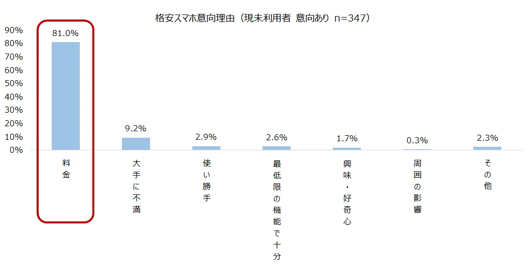 現未利用者が利用したい理由の8割は「安いから」。ついで1割弱が「大手に不満」。