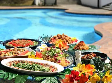 プールサイドで水着のまま楽しめる、バラエティ豊かな料理が食べ放題!(ソフトドリンク飲み放題付)