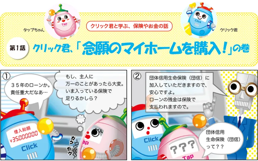 当社のインターネット申込専用定期保険「クリック定期!」にちなんだキャラクター、クリック君が主人公となり、そのときどきの旬なテーマに沿って、保険やお金にまつわる「役に立つお話」を、マンガ仕立てのストーリーでご紹介します。