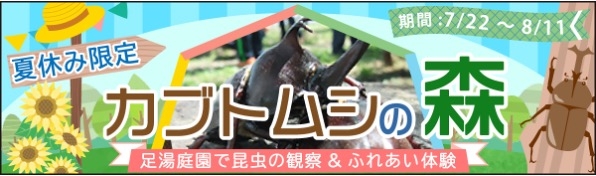 足湯庭園 ~おもてなしの庭~にカブトムシの森が登場します。