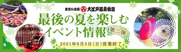 2021年9月5日(日)営業終了に向けてカウントダウン!【東京お台場 大江戸温泉物語】 最後の夏を楽しむイベント情報第2弾