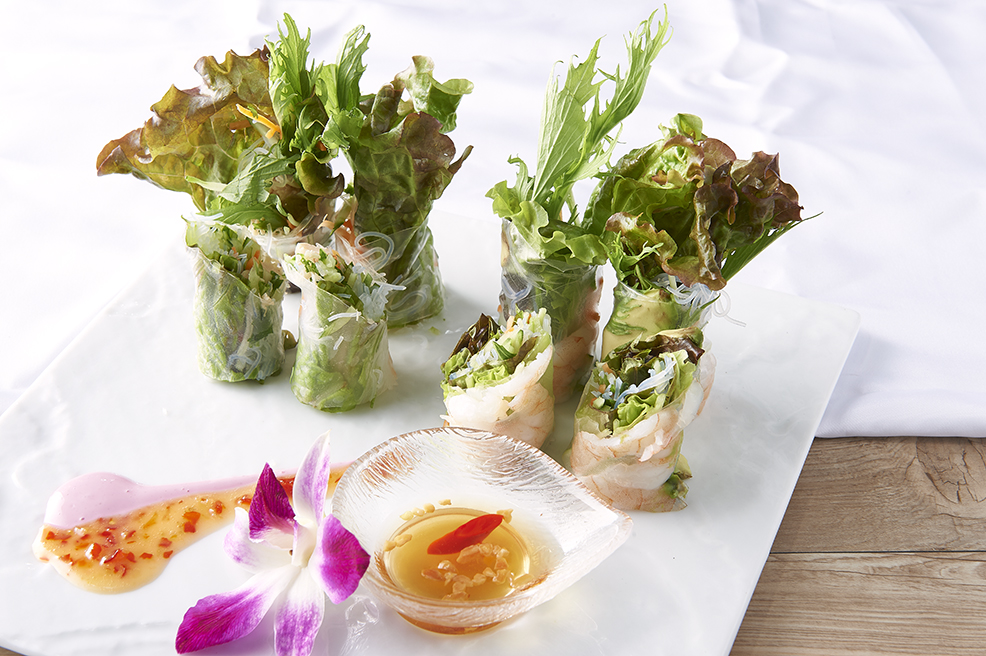 (2) 世界各国のスパイスやハーブを使ってフレンチ出身のシェフがオリジナルのソースを開発し、刺激的でありながら上品な一皿を提供いたします。