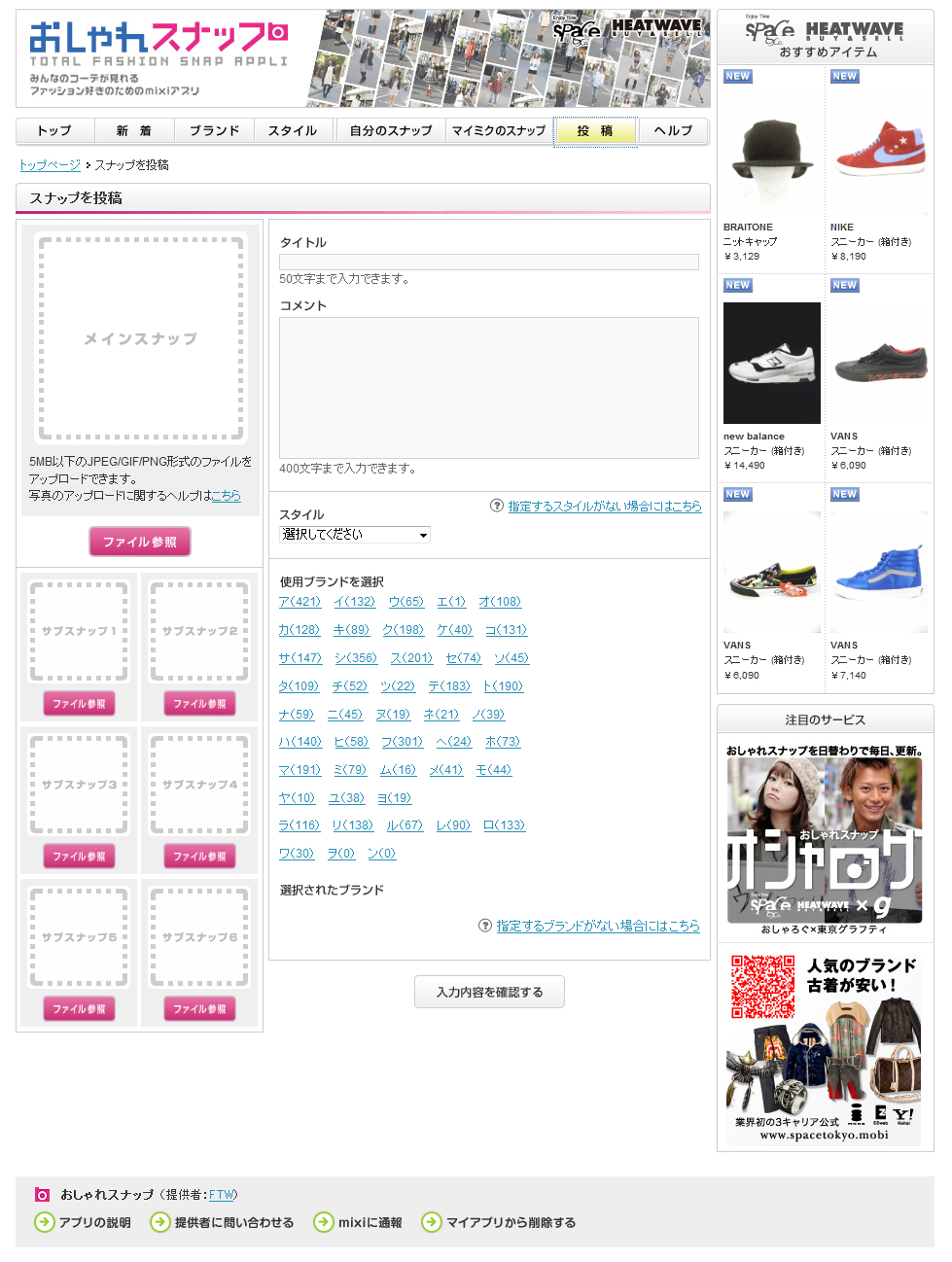 [mixiアプリ]ファッションスナップ投稿サービス「おしゃれスナップ」リリース