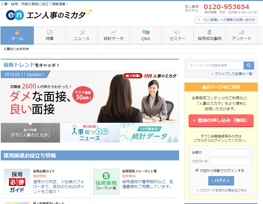 2002年10月に「他社の採用方法を知りたい」「求人動向が知りたい」といった人事の方の声にお応えしてスタートした無料の会員制サービスです。業界最大級の約8万人(2017年4月時点)の会員が利用。調査データや最新の求人動向、採用成功事例、人事労務関連の情報を提供しています。