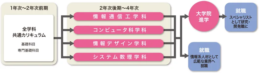 工学院大学情報学部の学科構成と進路の流れ