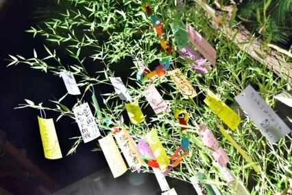 2.願い事をしたためた短冊を竹笹に飾り付け(イベント終了後、阿倍王子神社に