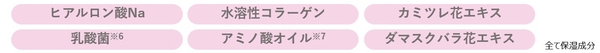 ※1 メイク効果による/※2 ナノ化セラミンド<水添レシチン・フィトステロールズ・セラミドNP・セラミドNG・セラミドAP(全て保湿成分)>・ ナノ化アルガンオイル<アルガニアスピノサ核油(保湿成分)>/※3 トウガラシ果実エキス・溶岩パウダー<火山土>・グルコシルヘスペリジン(すべて整肌成分)/※4 加水分解ヒアルロン酸、ヒアルロン酸ヒドロキシプロピルトリモニウム、アルギン酸Na、オウゴン根エキス(全て被膜剤)/※5 被膜効果によりお肌への付着を防ぐ/※6 乳酸稈菌/※7 ラウロイルグルタミン酸ジ(フィトステリル/オクチルドデシル)