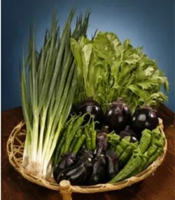 京都府産野菜をのせた醤油とバルサミコのオイル