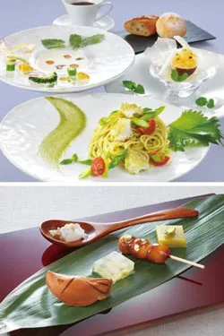 各ホテルのシェフが「涼」を共通テーマに、また「京都産野菜」を共通食材として料理内に盛り込んだメニューを考案いたしました。暑さが増していくこの時期にお楽しみいただきたい料理の数々。目にも舌にも涼感あふれるコースとして、素材・味・盛り付けにこだわった特別料理をご提供いたします。