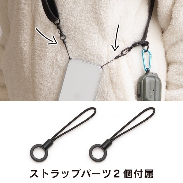 紐状ストラップパーツが付属(2個)しており、ストラップホール付きのさまざまなケースと併せて使用できます。