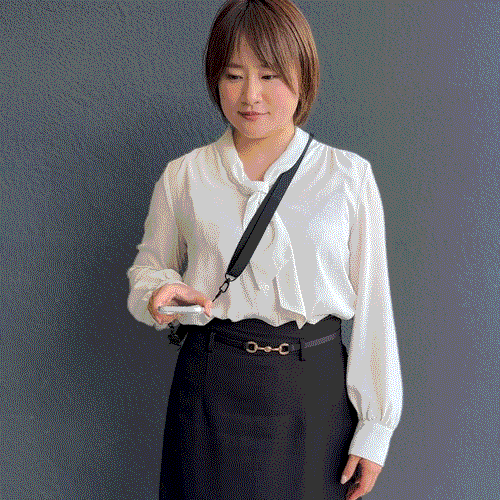 カジュアルにもビジネスシーンでも、ショルダーストラップにもネックストラップにできる2WAY仕様