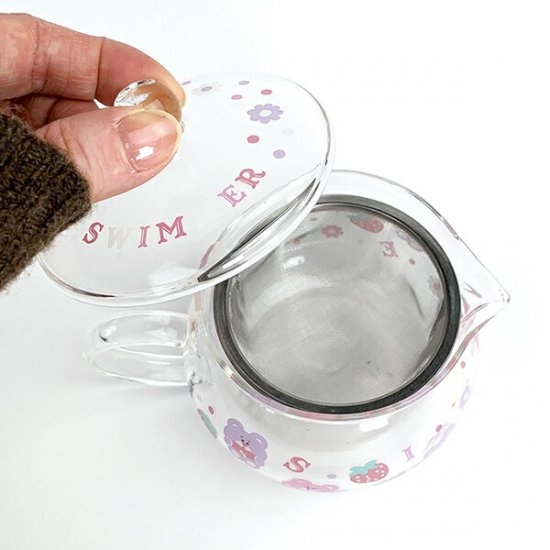スイマーらしさ溢れる、大人キュートなイチゴやくま、スイマーのロゴアルファベットなどが散りばめられたデザイン♪