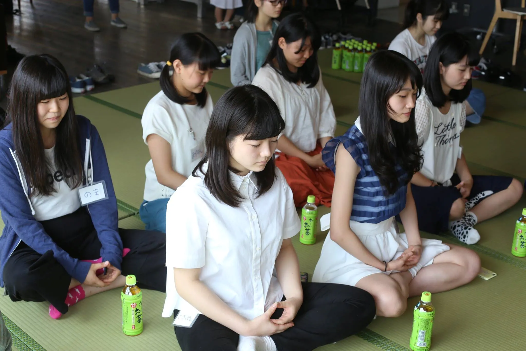 茶殻を利用してできた畳の上で座禅を組み、精神統一をする。