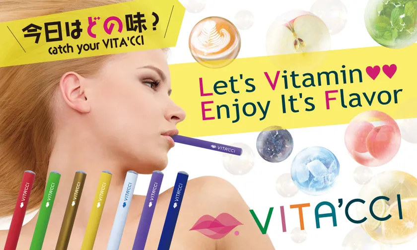 「VITA'CCI」は電子たばこではない、“ビタミンを吸う”という新感覚のスティック状アイテムです。ニコチンもタールもゼロ。吸っているのはビタミンの蒸気なので、喫煙者、非喫煙者関係なく使用できます。副流煙の心配もなくどんな方でも、どんな場所でも安心して吸引できるので禁煙目的の方にもおすすめです。また「VITA'CCI」には、コエンザイムQ10・ビタミンB・ビタミンC・ビタミンD・ビタミンEなど、他にも各種フレーバーに応じた果実エキスなどが入っています。