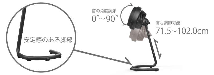 原点にあるのは航空力学。飛行機の性能を高める研究していた発明家が、その技術を扇風機に応用して生み出したものがサーキュレーターです。風の到達距離だけでなく独自のボルテックス技術が合わさり、他社では見られない循環力を生み出しています。