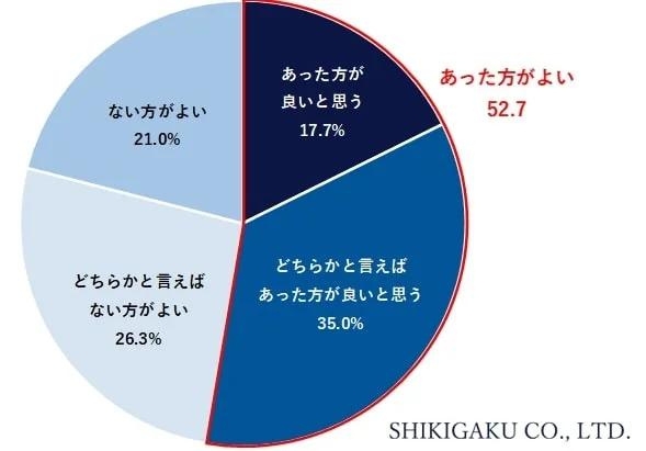 「あった方が良いと思う」と回答したのは52.7%(あった方が良いと思う17.7%/どちらかと言えばあった方が良いと思う35.0%)でした。