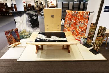 昔の結納シーンを和硝子を配して表現したブース(匠大塚本店にて)