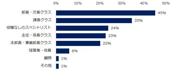 「部長クラス」が採用される背景は「若いうちから責任あるポジション、マネジメントを任されており、キャリアアップ転職、前向きな転職をしてきている」「仕事内容と求められるキャリアが明確。母数は少ないが、マッチした時に成功する角度が高い」「年齢や経験が増す上位職ほど転職回数が多くなるため」などの声が挙がりました。
