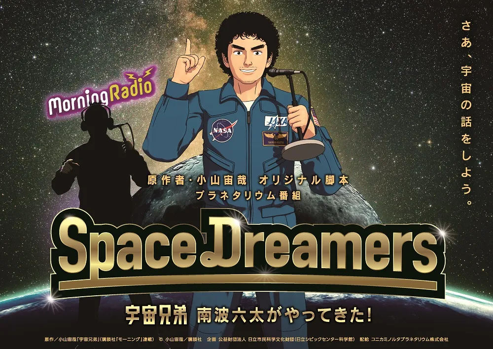 コニカミノルタプラネタリウム“満天”では夏の新作として、「Space Dreamers ~宇宙兄弟 南波六太がやってきた!~」(英題:Space Dreamers "Space brothers" Mutta is coming to town)」を2017年7月22日(土)より上映を開始する。